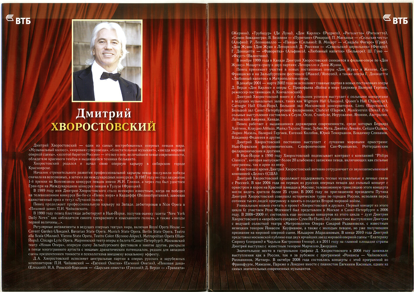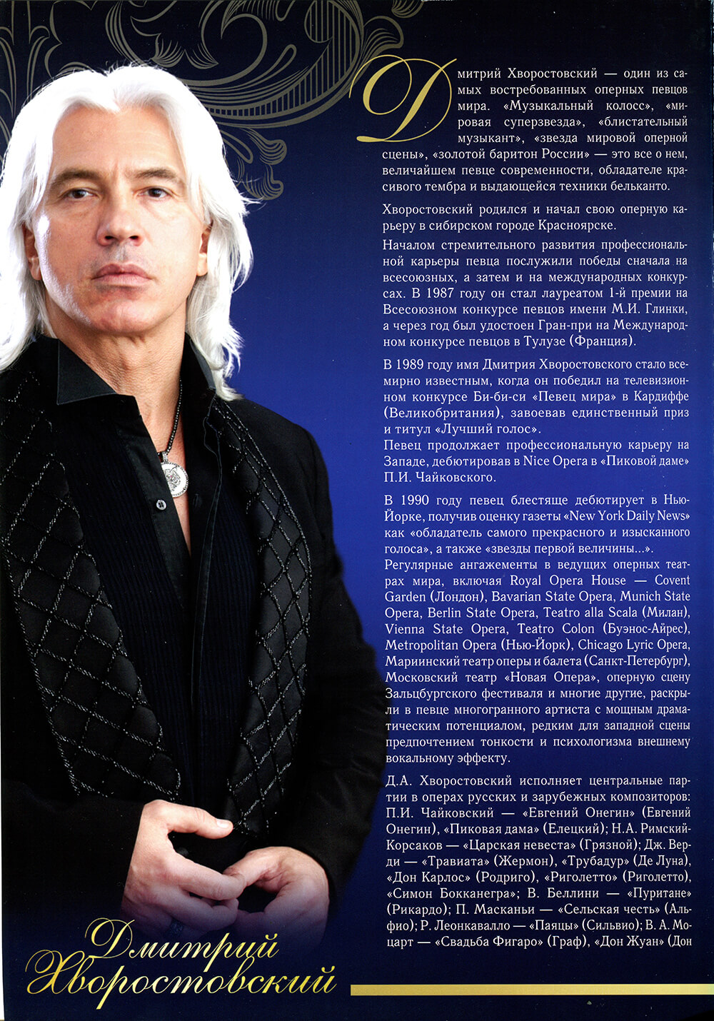 Анна Нетребко и Дмитрий Хворостовский — российские звёзды мировой величины. Они пели вместе многие спектакли: «Царскую невесту» Н. Римского-Корсакова, «Дон Жуана» В.А. Моцарта, «Евгения Онегина» П.И. Чайковского. Их связывают настоящая дружба и совместное творчество.