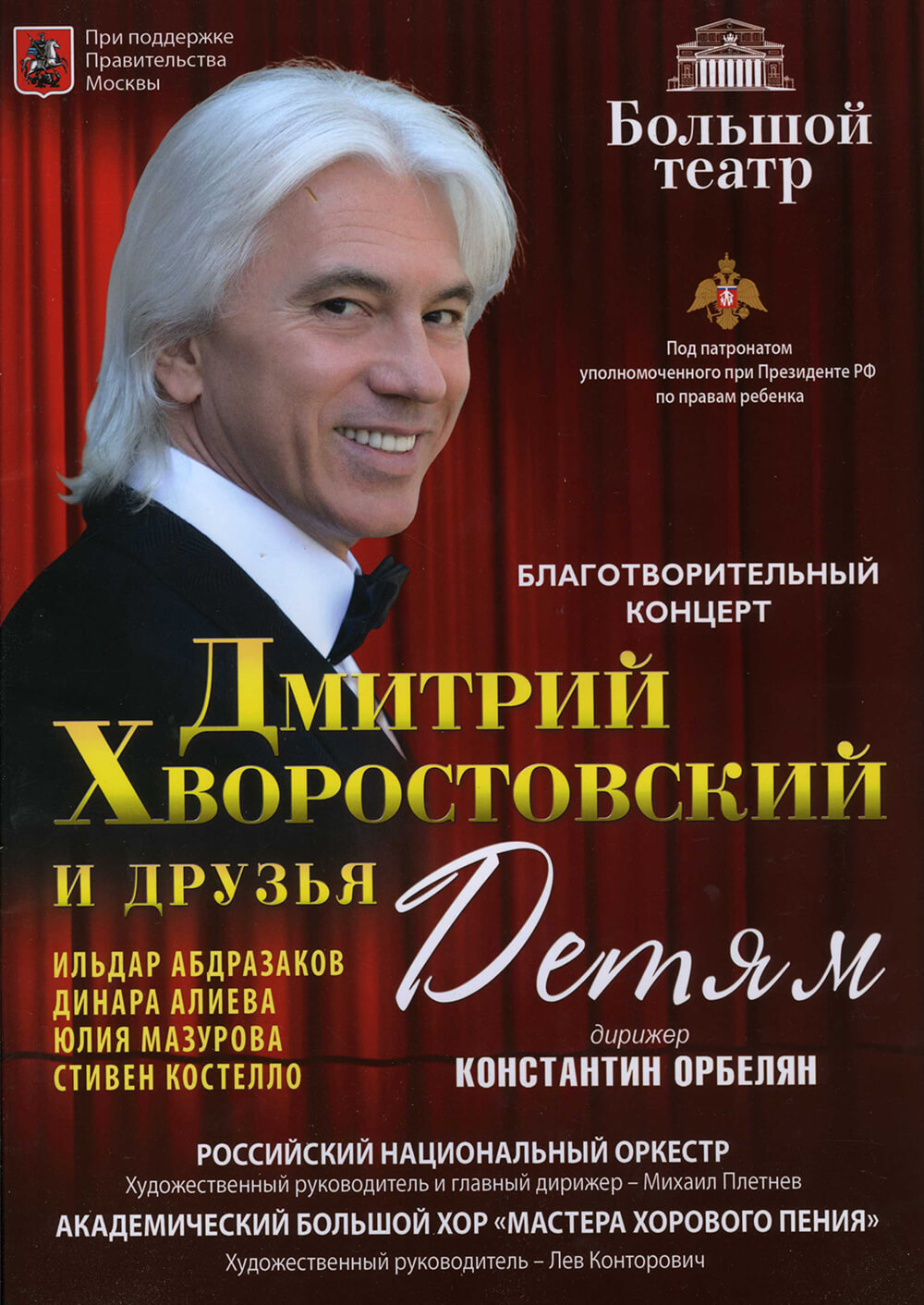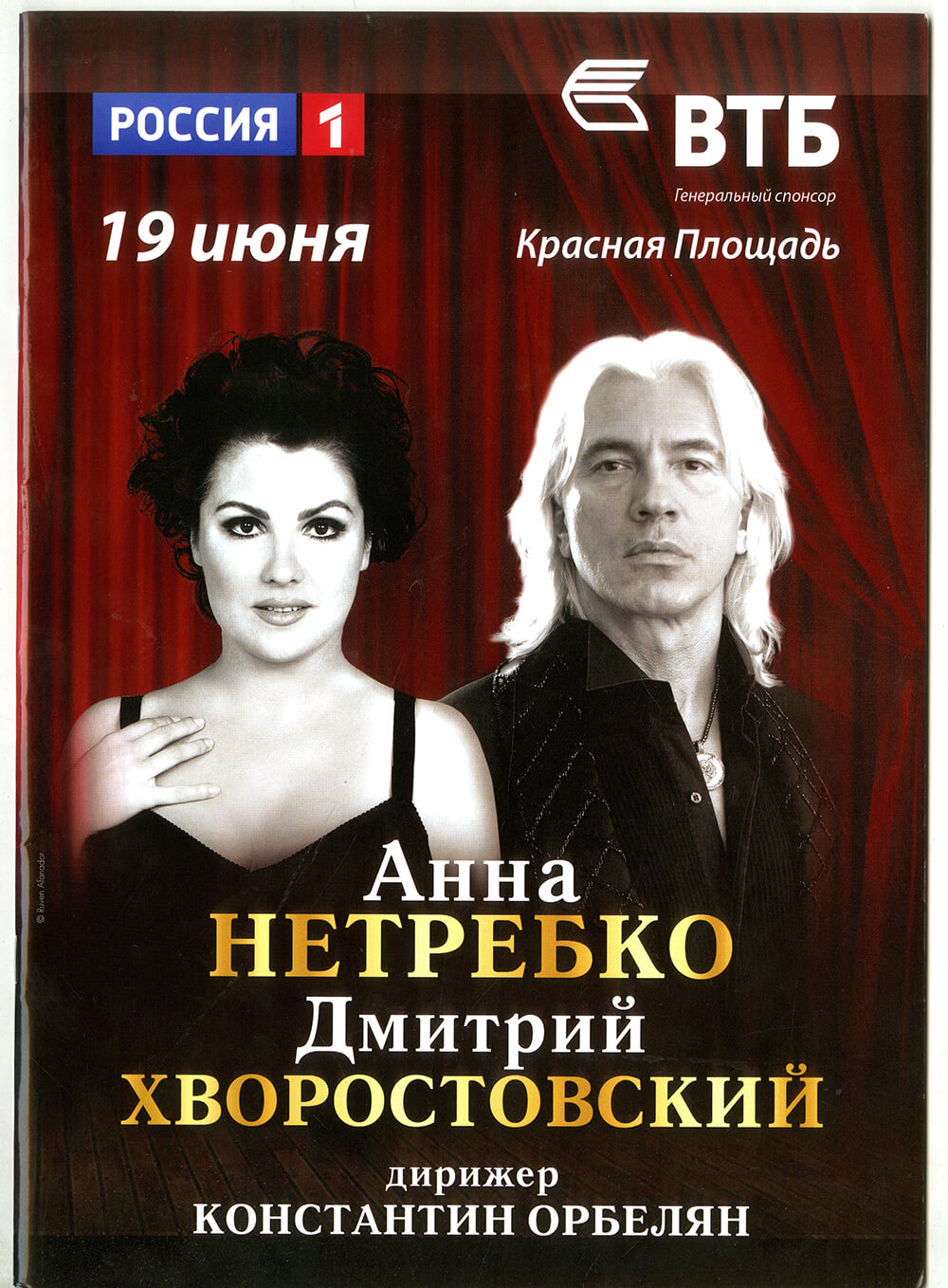 19 июня 2013 года в рамках проекта «Хворостовский и друзья» состоялся уникальный благотворительный концерт Анны Нетребко и Дмитрия Хворостовского. Концерт проходил в Москве, на Красной площади. Вход был свободный. Прямую трансляцию с мероприятия вёл телеканал «Россия 1». Транслировался концерт в Европе, Америке и Японии.