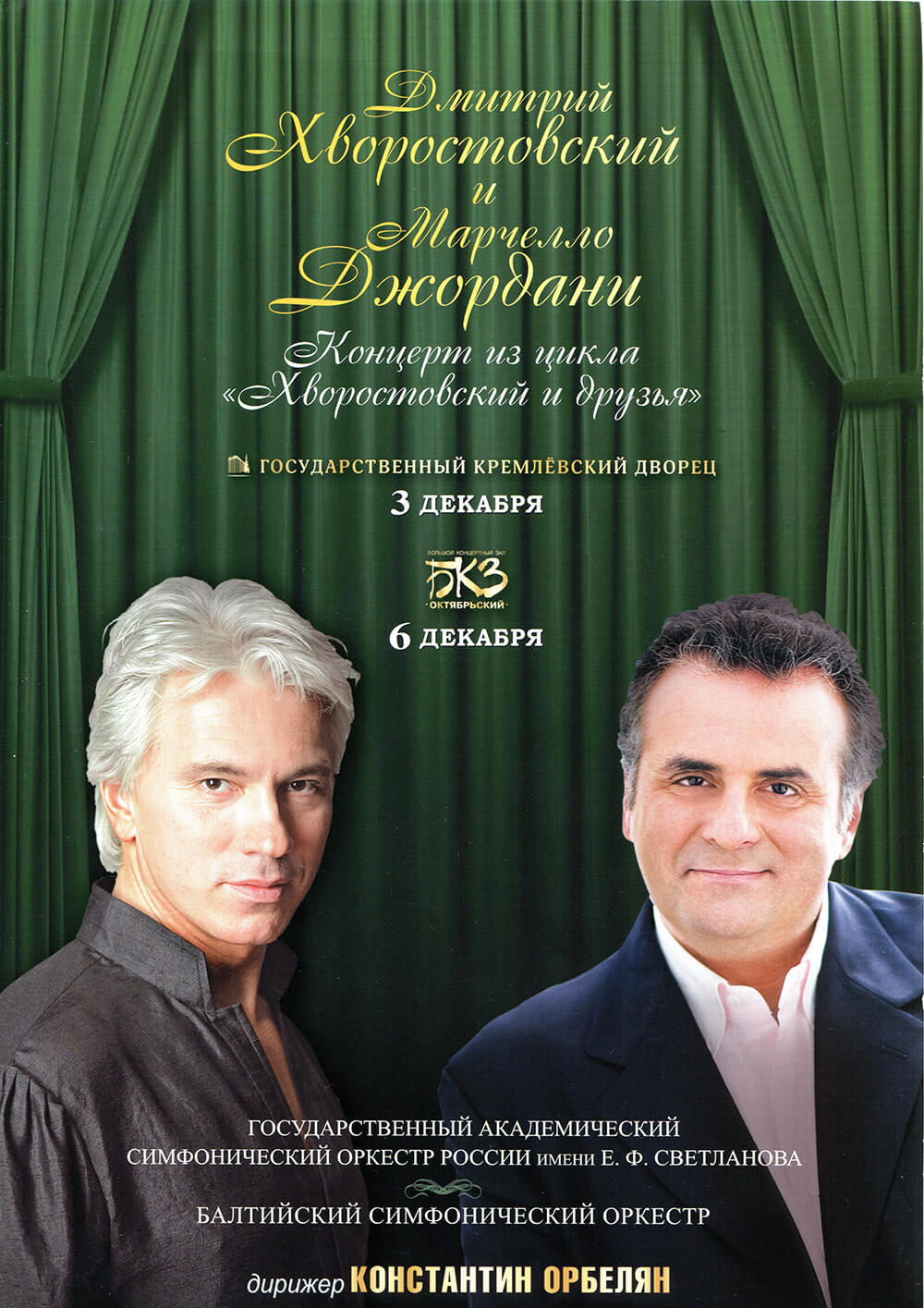 В этом концерте участвовали: Ильдар Абдразаков, Динара Алиева, Стивен Кастелло, Юлия Мазурова. Это в основном молодые, но уже известные оперные исполнители, исполнители нового поколения. И Дмитрий Хворостовский помогает в их становлении, приглашая в совместные концерты. Со многими из них он участвовал в спектаклях.