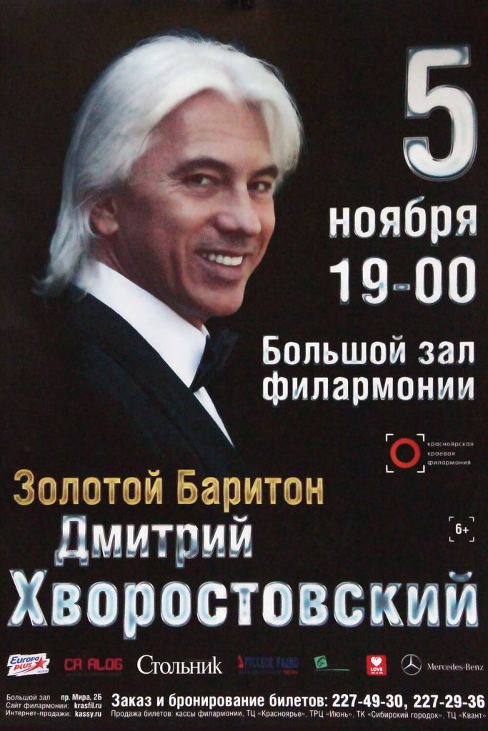 На концертах Хворостовского в Красноярске всегда аншлаги. Первые концерты были камерные и проходили в Малом зале Красноярской филармонии, где артист выступал под аккомпанемент рояля. Вместить всех желающих этот зал, конечно, не мог. Часто сидели на ступеньках, балкон был всегда полон, там обычно размещали студентов. Это была самая внимательная, самая родная и самая эмоциональная публика. Были концерты и на сцене Красноярского театра оперы и балета, но не часто. Затем Хворостовский, первый из оперных вокалистов, не побоялся опробовать сложную акустику Большого концертного зала Красноярской филармонии. И концерты стали проходить на большой сцене совместно с красноярскими оркестрами: Красноярским филармоническим русским оркестром под руководством А. Бардина и Красноярским симфоническим оркестром, которым, как правило, дирижировал талантливый дирижёр и друг Дмитрия Хворостовского Константин Орбелян.