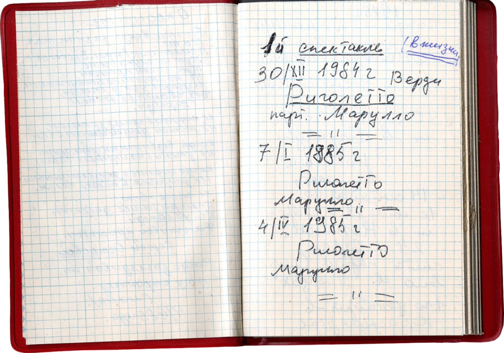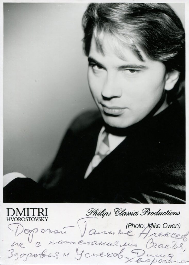 Сохранилась записная книжка певца, подаренная Дмитрию его мамой, где её рукой записаны первые четыре спектакля, в которых будет участвовать её любимый сын. Это было большим и долгожданным событием в семье Хворостовских. Первые шаги на сцене оперного театра, служение театру, музыке, оперному искусству – это было начало большого творческого пути, то, о чем мечтали родители Д.А. Хворостовского, к чему готовили своего единственного сына.