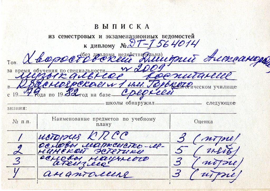 Красноярский государственный институт искусств. Вокальное отделение. 1982-1987