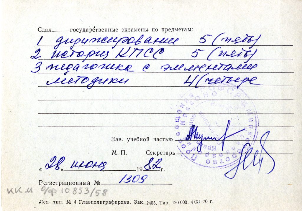 Красноярское педагогическое училище имени А.М. Горького. Дирижёрско-хоровое отделение. 1979-1982