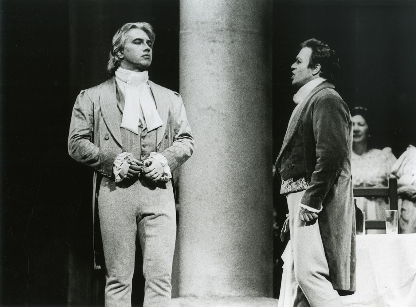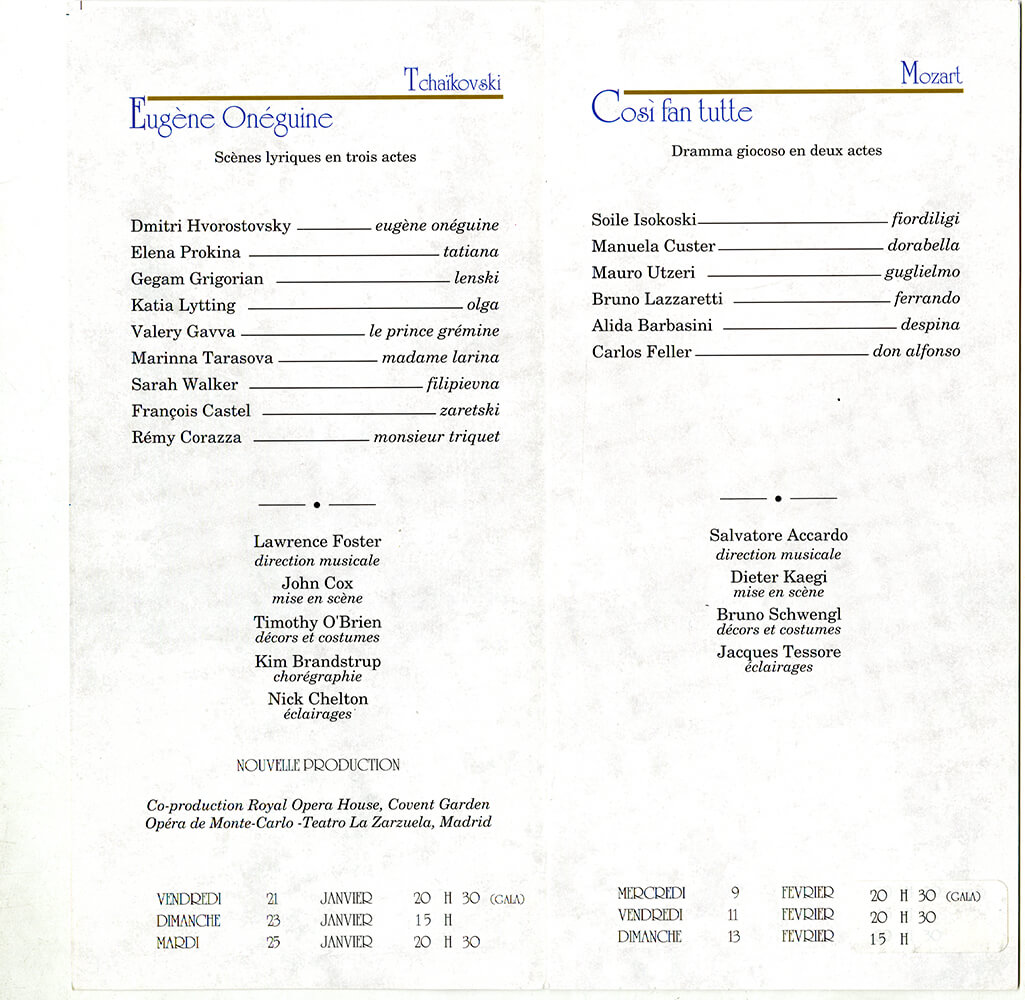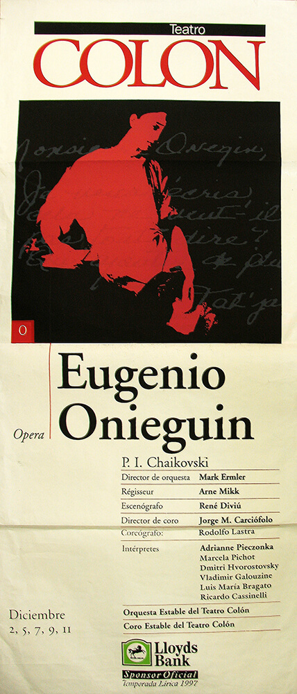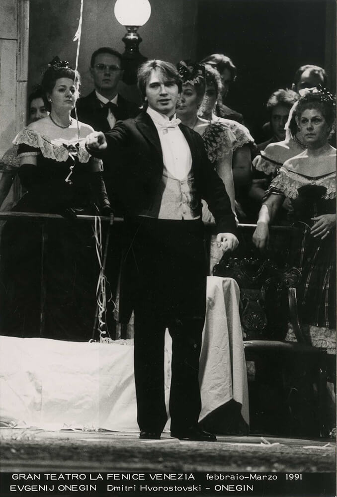 Одна из ранних и любимых опер Дмитрия Хворостовского – «Евгений Онегин» П.И. Чайковского. Первое исполнение партии Онегина состоялось в 1988 году на сцене Красноярского театра оперы и балета. Отметим, что красноярцы любили этот спектакль с Онегиным – Хворостовским так же сильно, как и «Травиату», где Хворостовский великолепно исполнял Жермона.
