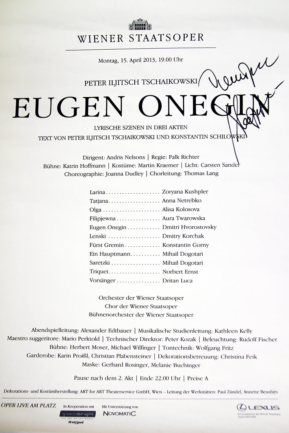 Он был необыкновенным Онегиным по многим причинам. Во-первых, Бог дал ему такой голос, который человек никогда не забывает, когда слышит его. Во-вторых, из-за самой личности этого человека. Полной радости, жизни, тепла, щедрости. И поэтому он трогал стольких людей в течение многих лет. Это очень сложная роль, и Дмитрий очень много над ней работал. Конечно, помогает то, что он происходит из этой культуры, что язык Пушкина и Чайковского был родным для него.