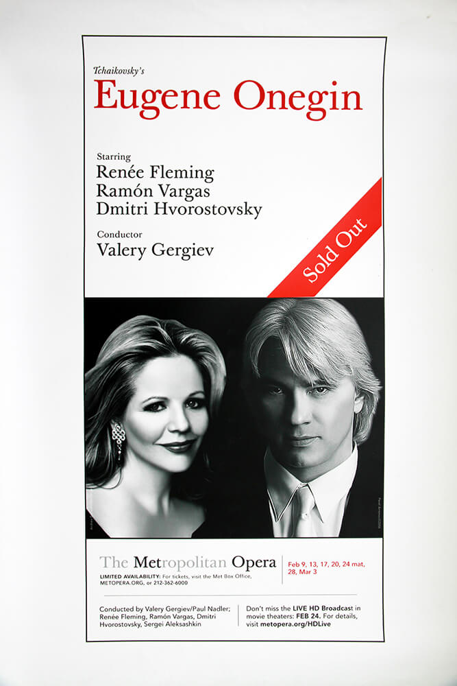 Одной из лучших зарубежных постановок «Евгения Онегина» в исполнении Дмитрия Хворостовского можно считать постановку в Метрополитен Опера 2006 года. Дирижировал спектаклем маэстро Валерий Гергиев, партию Татьяны исполняла американская оперная дива Рене Флеминг, Ленского – мексиканский тенор Рамон Варгос.