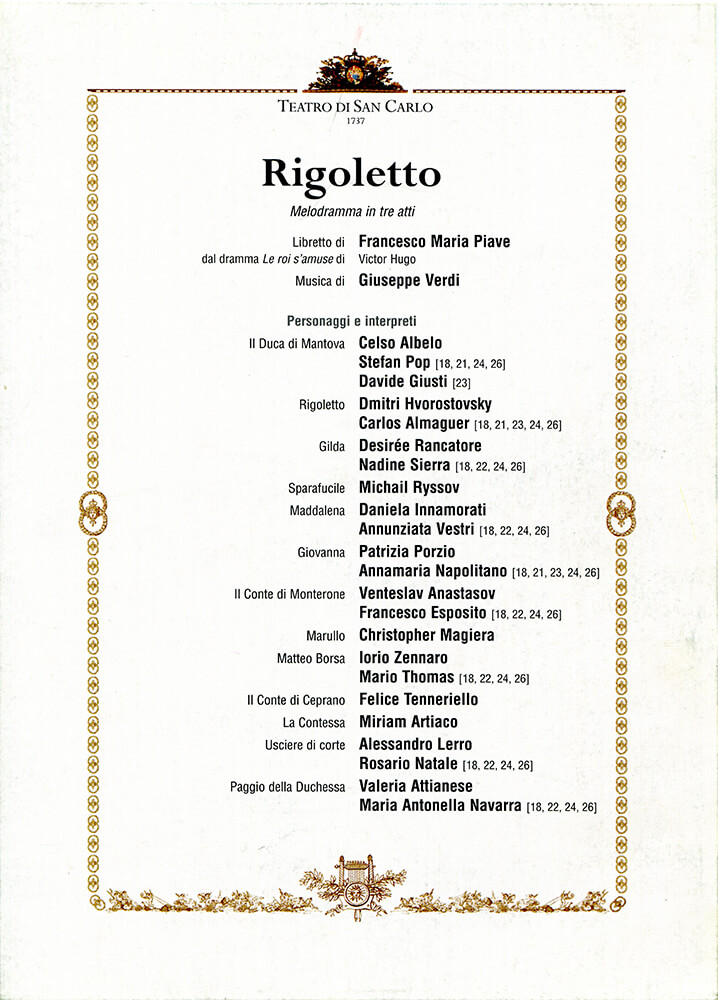 Это была одна из моих любимых ролей, любимых опер – и остаётся по сей день. Я мечтал об этой партии с девятнадцати или двадцати лет – с тех пор, как начал петь более-менее профессионально. Кстати, довольно примечательно то, что мой оперный дебют в 1985 году в Красноярске состоялся именно в «Риголетто» – я пел Марулло. Потребовалось почти двадцать лет, чтобы моя давняя мечта стала явью.