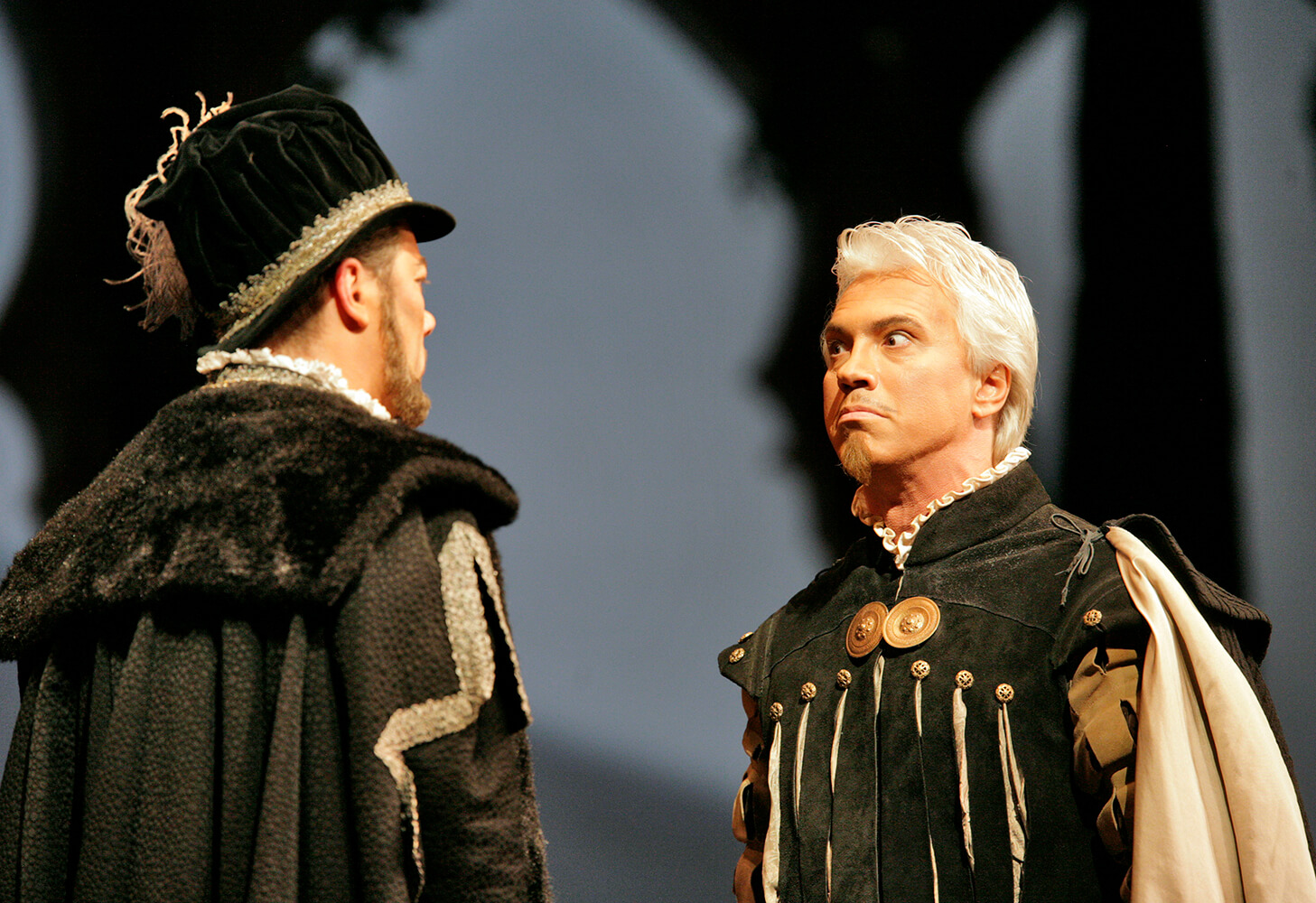 Великолепный русский баритон Дмитрий Хворостовский привнёс свой бархатистый мужественный голос и отличительный тембр в роль Родриго, любимого друга Карлоса и проблемного советника Короля.